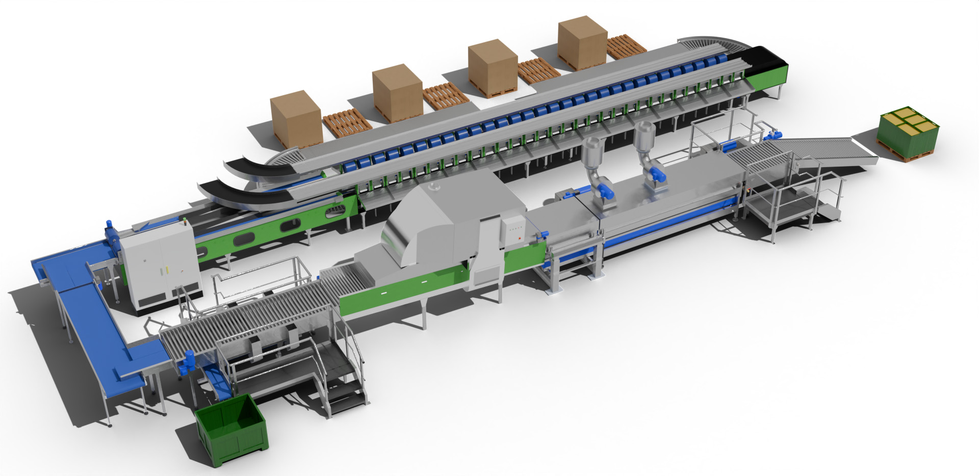 We develop custom projects. With our technological excellence and quality, we are able to provide you with a global solution that addresses each step of the process, from receiving the fruit to the final palletizing and strapping.