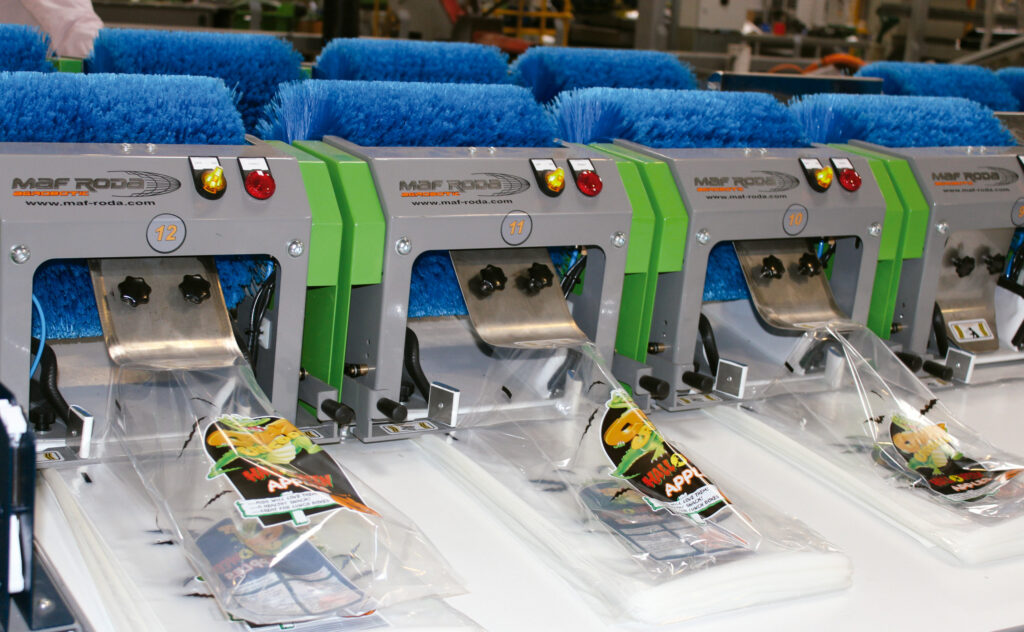 The MAF RODA bagging range, including the Speed Bagger, FreeBagger, and SprintBagger models, is designed to automate and simplify the bagging process for apples, pears, and tomatoes. These machines are highly versatile and can be easily integrated into the production line with minimal adjustments.