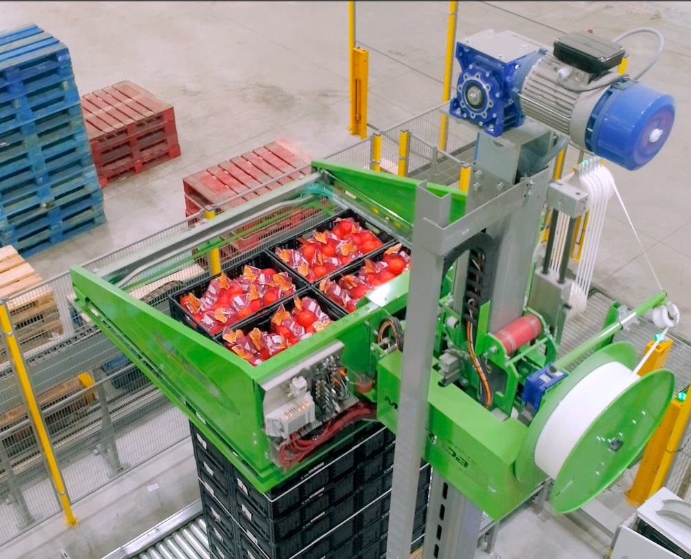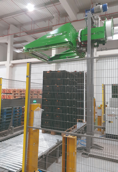 For palletizing and strapping we have the FLA400 machine, an automatic strapping machine for pallets that adapts to all types of sizes without the need to reprogram, as well as the edge protector dispenser.
