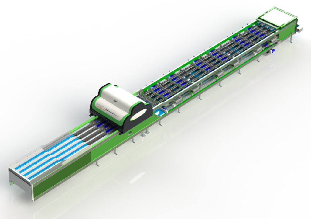 Integration with the Optiscan electronic system provides advanced selection options by diameter and color, while the Orphea system facilitates fruit classification control, based on diameter and accumulated weight, accommodating fruits from 30 mm to 150 mm.
